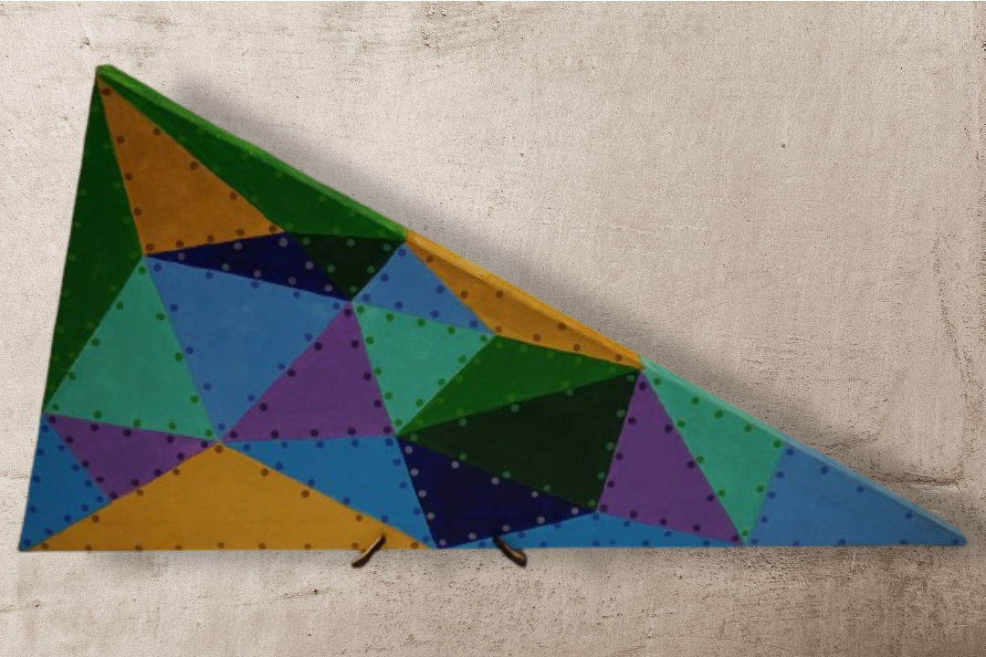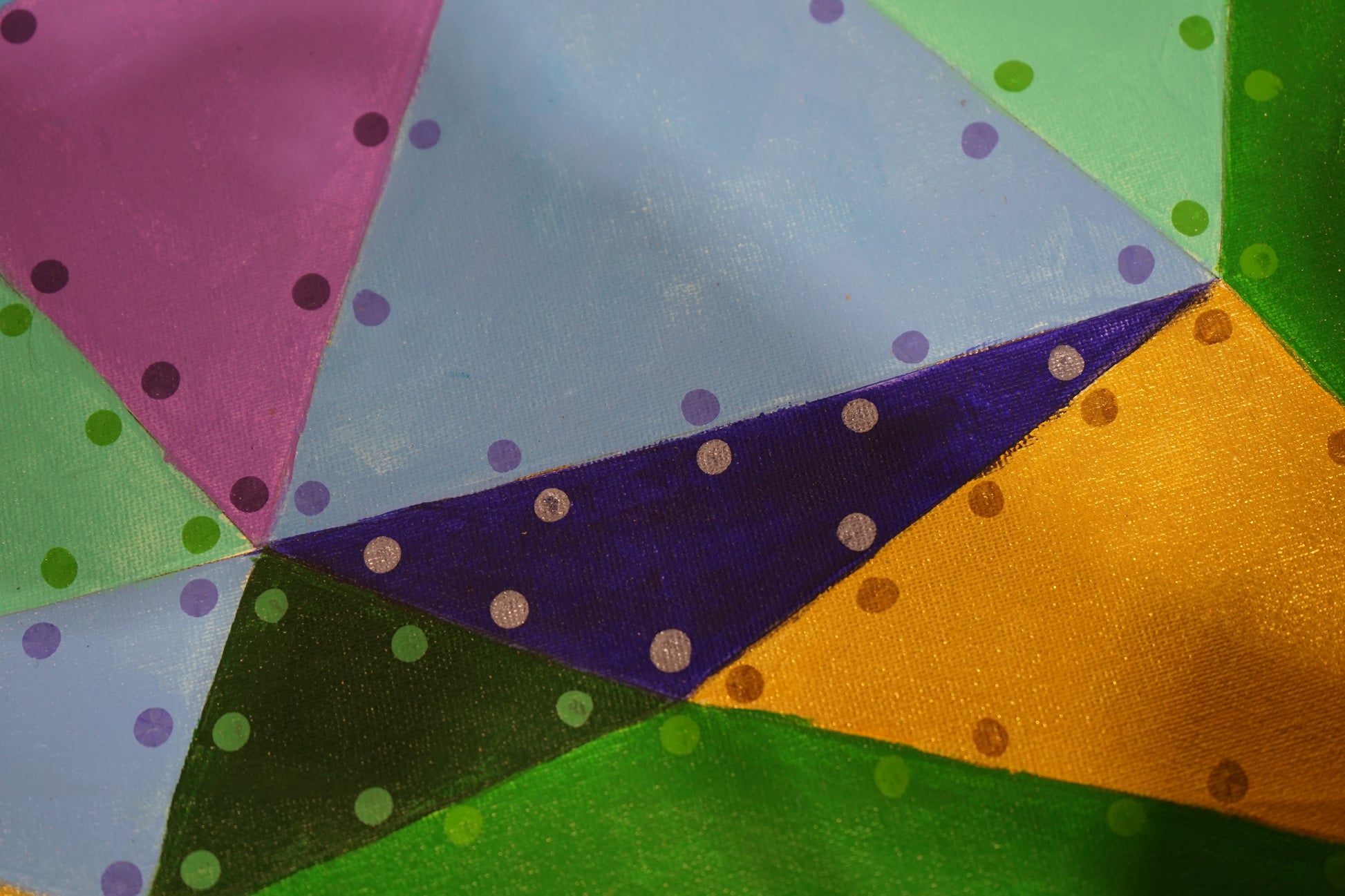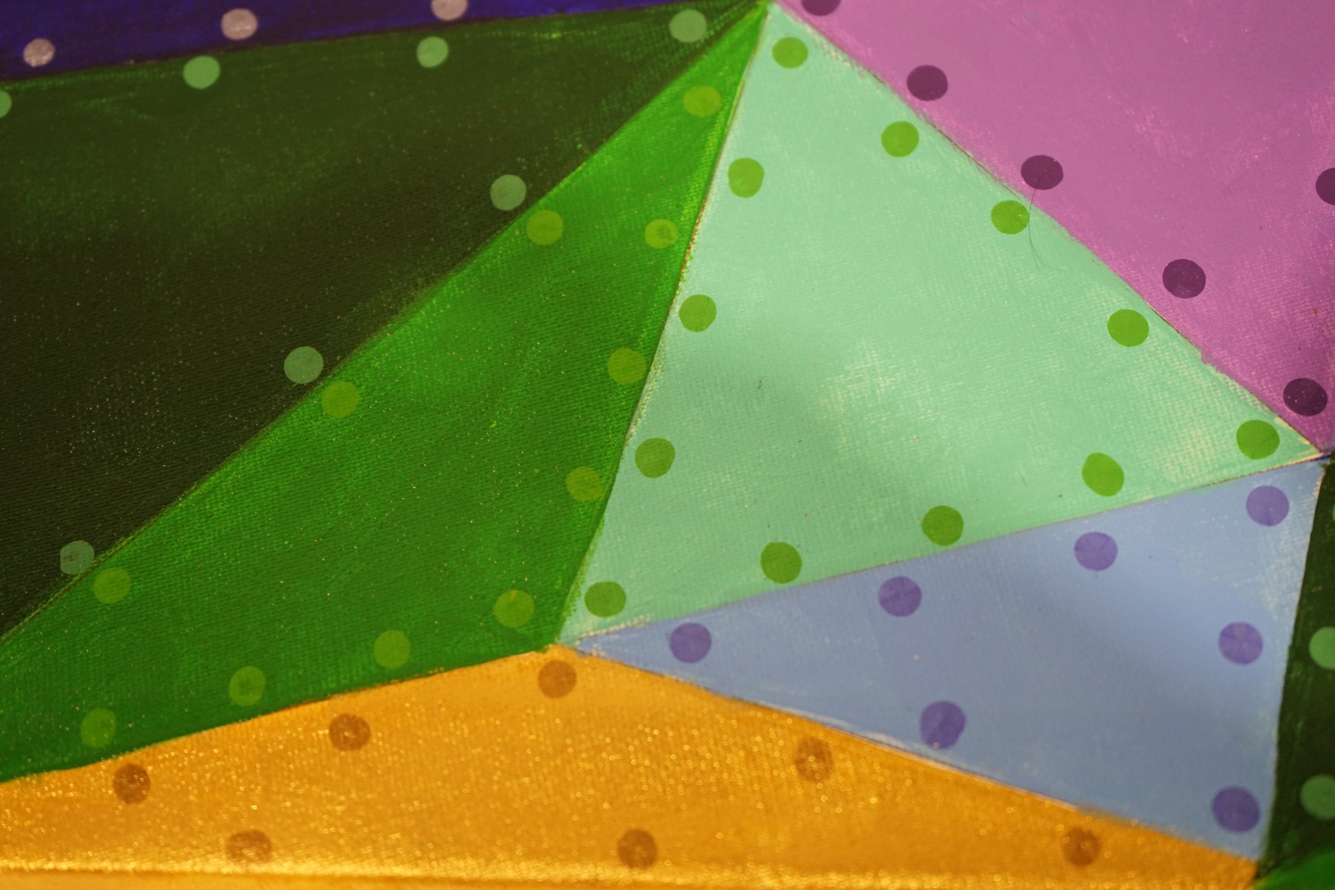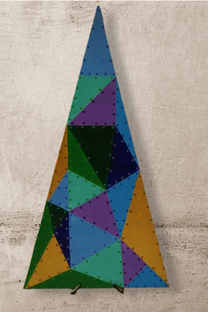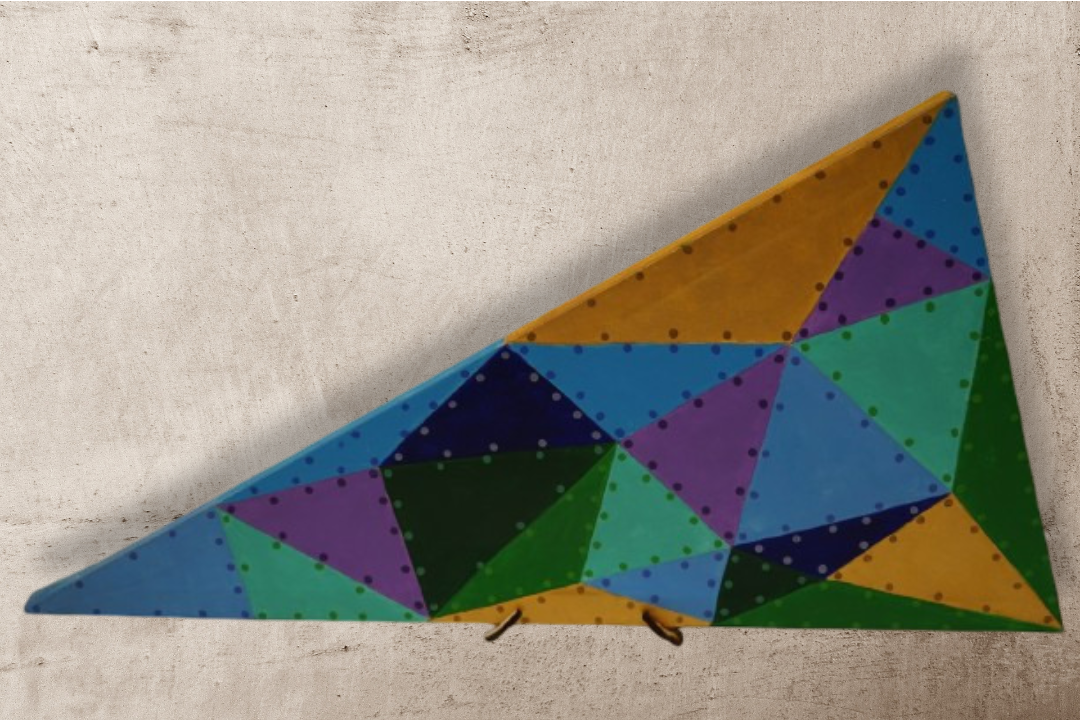 Bring a bold, modern touch to your space with this unique abstract geometric painting. This striking triangle painting was painted with premium acrylics on a custom-cut canvas, and finished with a light matte gloss. Vinyl backing included.