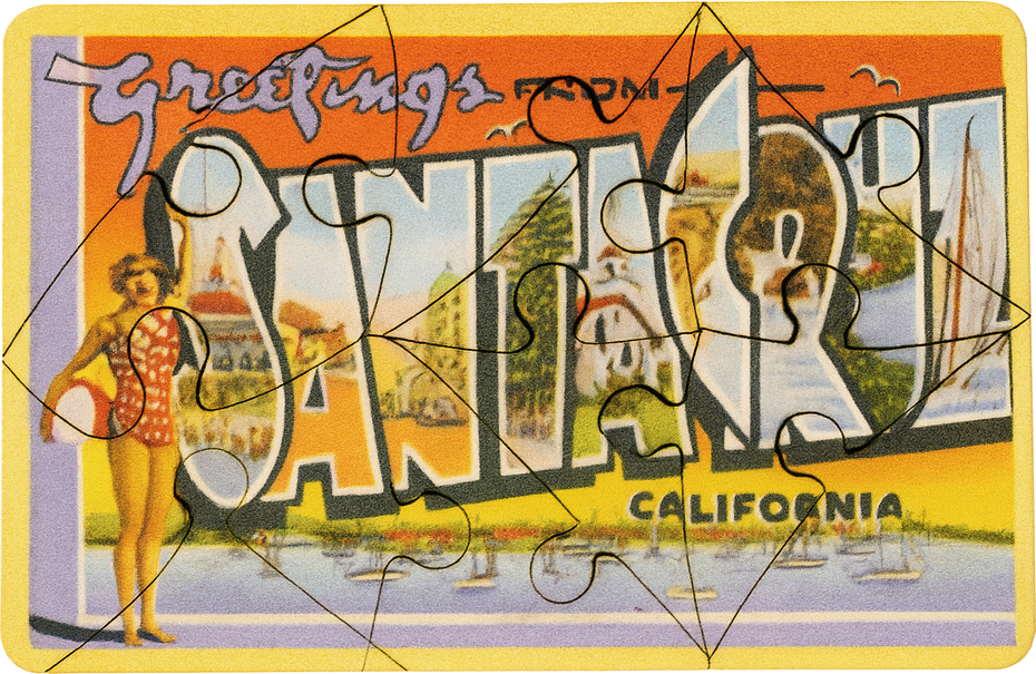 Bring a touch of Santa Cruz charm to your puzzle collection with this handcrafted wooden jigsaw puzzle, featuring a vibrant reproduction of a classic “Greetings from Santa Cruz, California” postcard.